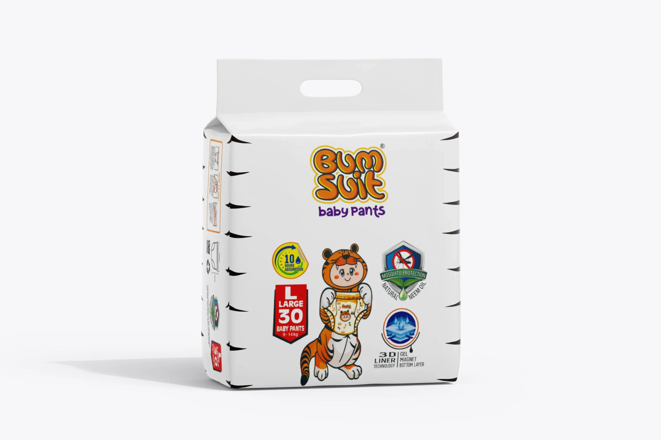 Bum Suit isn’t just another diaper, it’s a revolution in happy parenting. This innovative diaper goes beyond basic functionality to provide superior protection and comfort for your little one. Natural neem oil keeps mosquitos at bay, day and night, while the 3D Leak Guard ensures a snug fit and unbeatable leakproof confidence. Bum Suit prioritizes your baby’s comfort with Bubble Layer Technology, offering incredible softness and superior absorbency. A powerful antibacterial shield keeps your baby clean and healthy, while the breathable material promotes all-day freshness. Finally, ultra-soft materials pamper your baby’s delicate skin, providing the cloud-like comfort they deserve. Bum Suit – everything you need for happy babies and stress-free parents!
